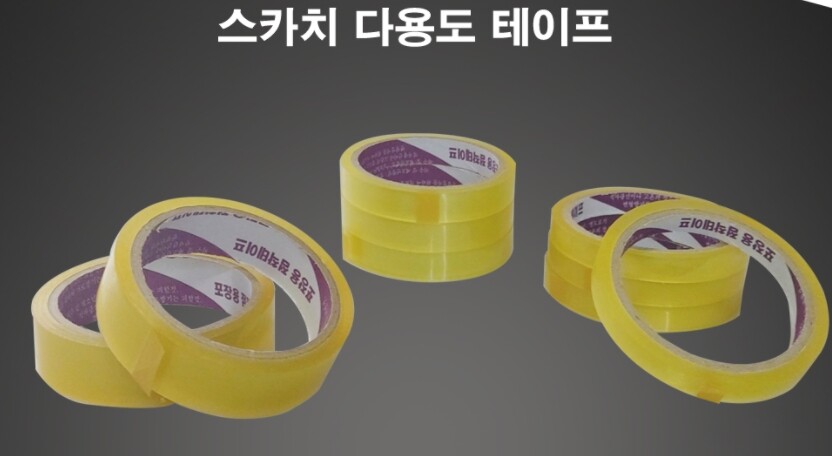 투명OPP테이프 길이: 약 24M 2.4cm×2ea, 1.6cm×3ea, 1.2cm×4ea 교육용, 사무용으로 가장 널리 사용되는 테이프입니다. *물레방아 테이프커터기등에 리필하여 사용 가능합니다.